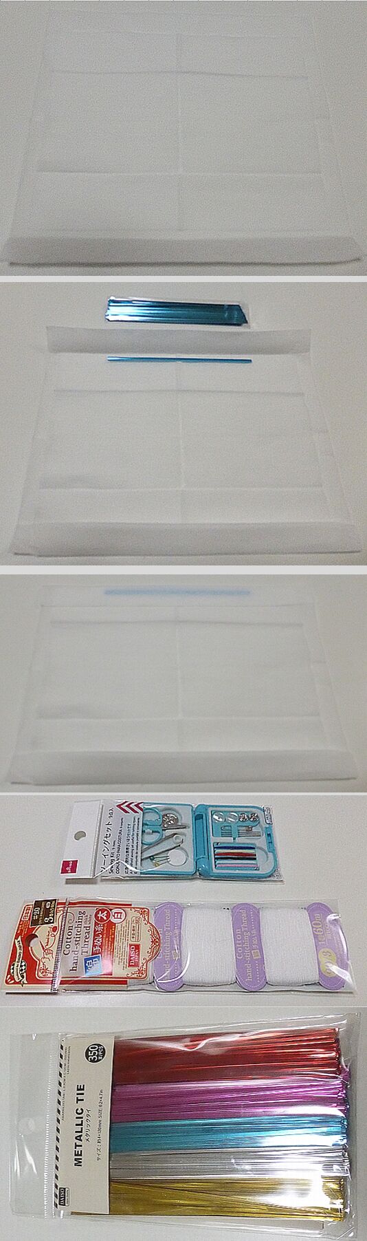 【4枚目】ダイソーで買ったソーイングセットと白糸