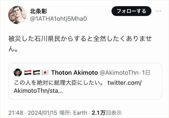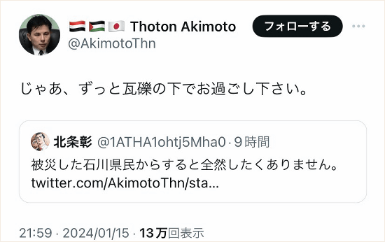 — トゥーンベリ・ゴン (@bakanihakaten35) January 15, 2024