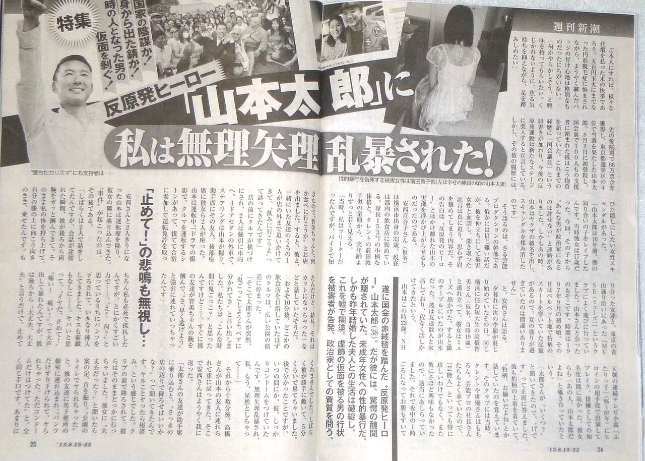 何故かマスコミはスルーする「山本太郎の無理矢理乱暴」。