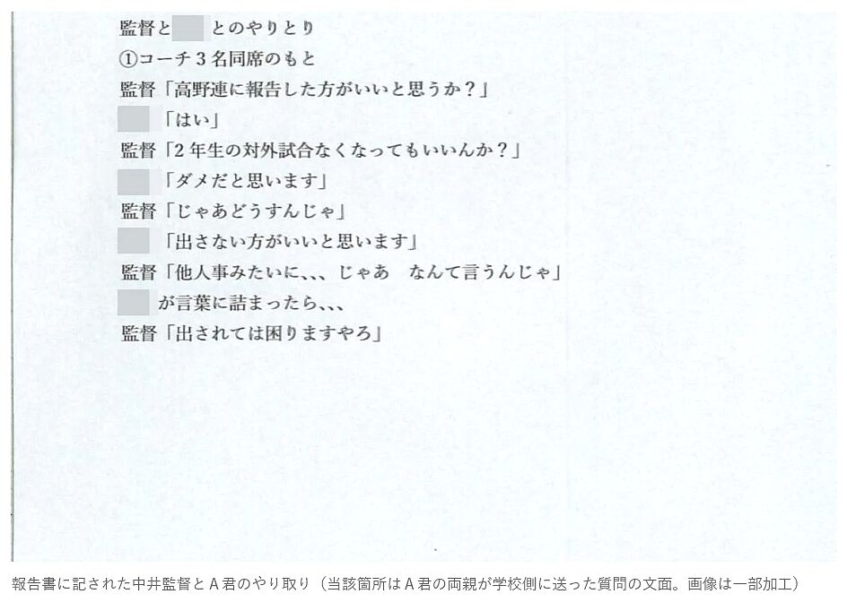 監督の「対外試合がなくなってもいいんか?」発言を否定しない学校側報告書の存在も https://t.co/Pd5ocVId0B
