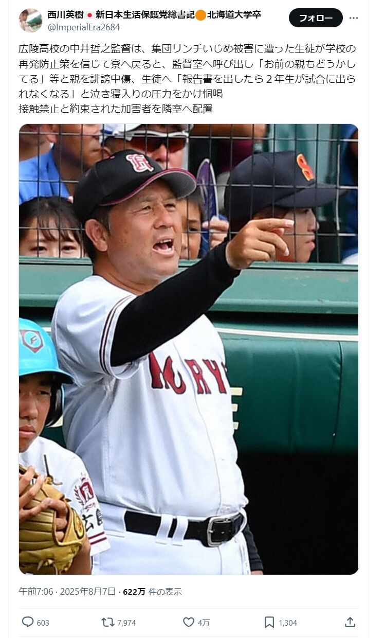 広陵高校野球部、10年前にも起きていた暴力事案を告発 病室で監督が発した非情すぎる一言https://t.co/GLmNhIr3No